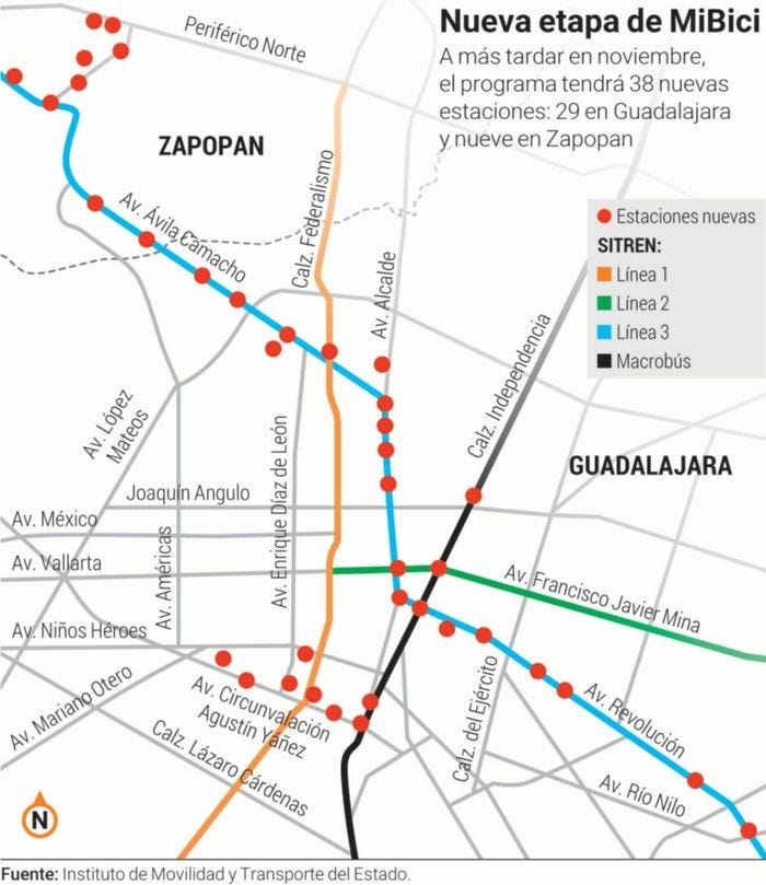 Las estaciones sobre Alcalde, Ávila Camacho y Revolución podrán aprovechar la naciente red de ciclovías de la ciudad de manera inmediata. Mismo caso de las estaciones de la #Moderna, colonia rodeada de las ciclovías de Washington, Federalismo y Niños Héroes (en construcción, de glorieta niños héroes a Chapalita).