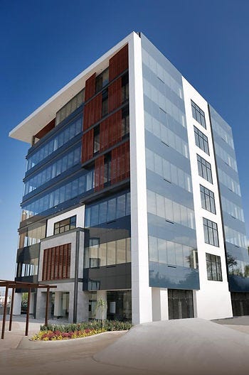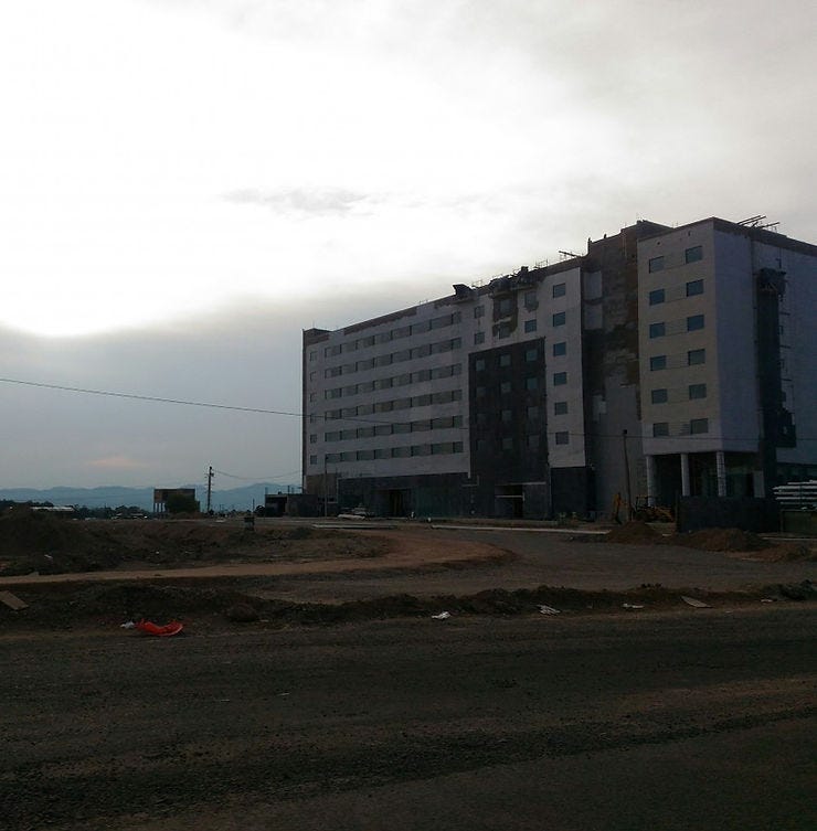 La primera torre terminada y próxima a ser inaugurada. La segunda se supone que ya inició la construcción. Para saber más del proyecto te recomiendo leer su post.