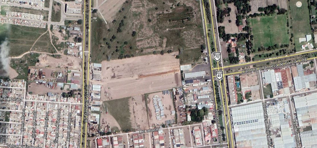 Se puede ver que justo al norte de la central de abastos se construyé la terminal sur de YoVoy. Se aprecia los avances en la limpieza del terreno.