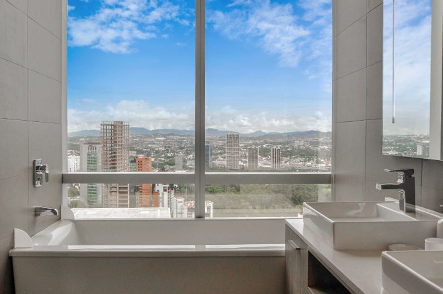 Los departamentos están en renta y se encuentran completamente equipados. Se pueden encontrar estudios o unidades de 1, 2 o 3 habitaciones. Todos cuentan con aire acondicionado (a ver como les va sin poder abrir sus ventanas y una fachada de cristal). El diseño interior es contemporáneo. Las vistas son envidiables, lo mejor de los departamentos de mi punto de vista.