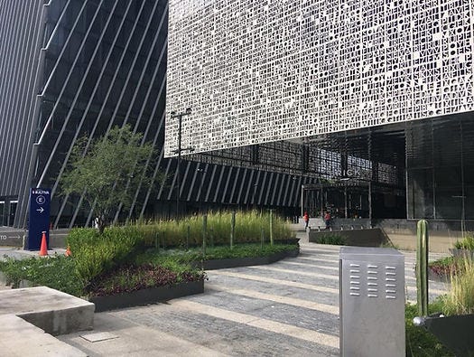 A esto se le suman unas jardineras con una curiosa paleta vegetal. Y la cereza del pastel, no hay un recorrido claro o conexión espacial con la torre desde la banqueta. Y no hay que olvidar que no se plantó ningún árbol en la banqueta, tampoco en su vecina Américas 1500.