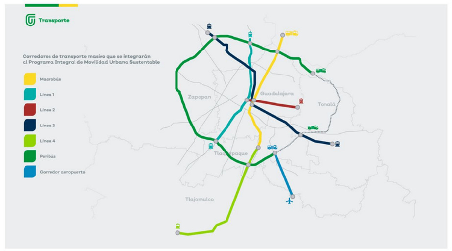 En Guadalajara operan 2 líneas de tren ligero (realmente es una y media) y una de BRT. Con esta infraestructura se movían alrededor de 374,000 viajes diarios (pre-covid19).