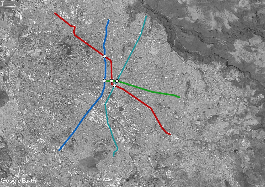 Si bien aún faltaría mucho por hacer, creo que con esto se resolverían algunos de los principales problemas de la red que se construye al día de hoy. Siguientes prioridades serían continuar el Suburbano a Chapala y al poniente, así como una diagonal SO a NE (Mariano Otero, Washington, Belisario Domínguez y Juan Pablo II), también mejorar las conexiones al oriente y a la cabecera municipal de Tonalá.