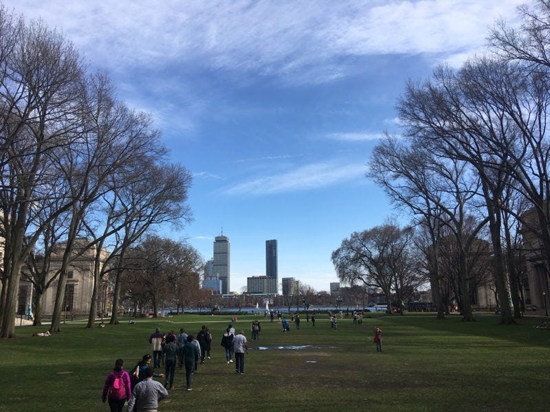 Las campus de las universidades de Boston son abiertas al público. Esto sorprende cuando las comparamos con algunas universidades públicas y casi todas la privadas de México. Mientras que en Boston se crea un ambiente universitario de estudio alrededor de las universidades, muchos campus en México terminan siendo bordes urbanos.
