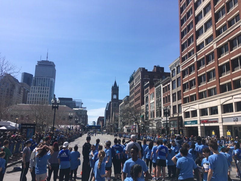 En Boston vi como se hacían carreras de velocidad con diferentes alumnos de primaria participando. El lugar estaba lleno de niños con sus familias, todo esto en una importante avenidas del centro de la ciudad.