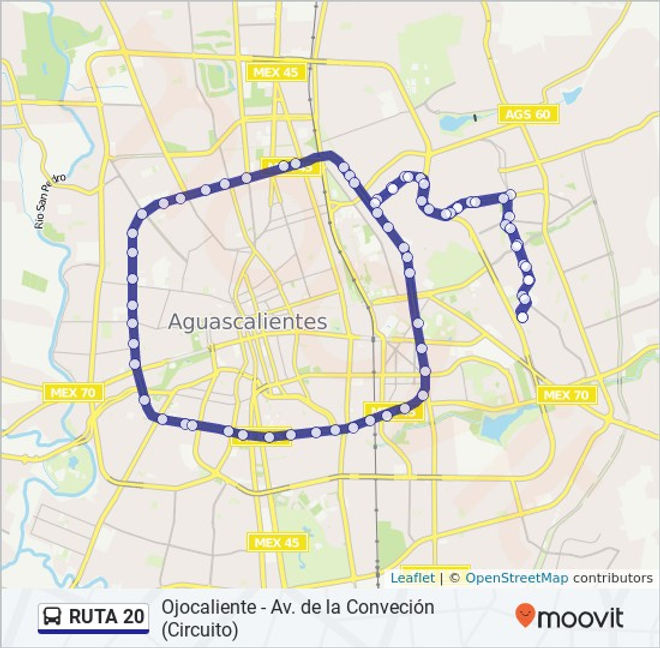 Realmente primer anillo solo tiene 14 km de largo, sin embargo la ruta 20 debe de cubrir una mayor distancia para llegar a la terminal de Ojocaliente. Si bien, los operadores de autobús deben de tener descanso, imaginemos que en algún punto de la ruta el camión para y hay cambio de operador, esto sin tener que conducir hasta la terminal. Los usuarios que quieran ir al oriente simplemente transbordarían a otra ruta donde les convenga.