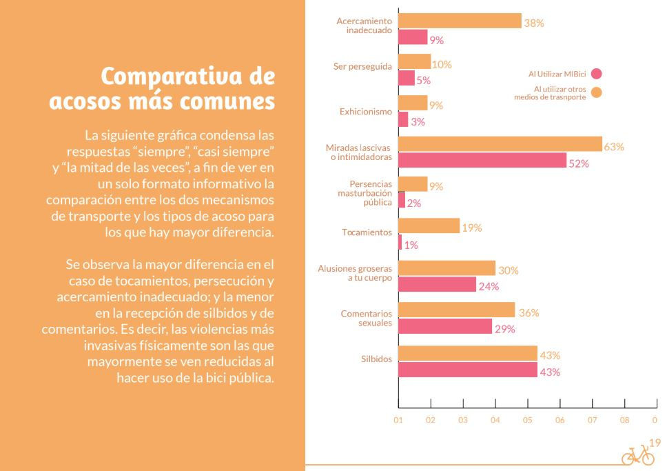 El estudio llegó a la conclusión que la bicicleta pública se vuelve una herramienta de acceso a la ciudad y libertad para las mujeres. Especialmente al reducir los acercamiento y tocamientos, así como la reacción de las mujeres ante el acoso. No se elimina el acoso, pero si su percepción y experiencia.