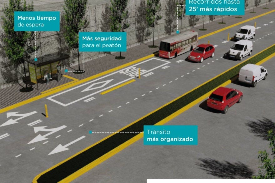 Cuando destinamos un carril para el uso exclusivo del transporte público estamos aumentando la capacidad de transporte de personas de la calle intervenida. Además se aumenta la velocidad de traslado. Finalmente los camiones (que son insuficientes en la ciudad) al moverse más rápido, también sus rutas requieren menos tiempo y se pueden usar más.