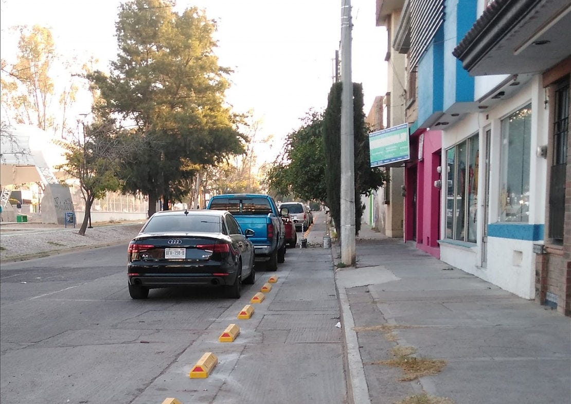 Otro punto que vale la pena considerar es la instalación de mobiliario urbano que acompañe y fomente el uso de la ciclovía, especialmente bici-estacionamientos, por lo menos uno por cuadra, ya Gobierno del Estado está haciendo lo suyo en Universidad.