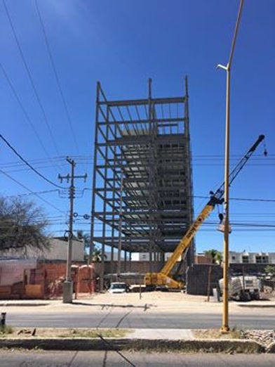 Muchos se han percatado de la construcción de una nueva torre sobre Av. Independencia, al norte de la ciudad, justo en el solar adyacente a la alberca Acali. De hecho se puede ver desde Colosio, pues el eje de Independencia se mueve unos grados, generando perspectivas interesantes.