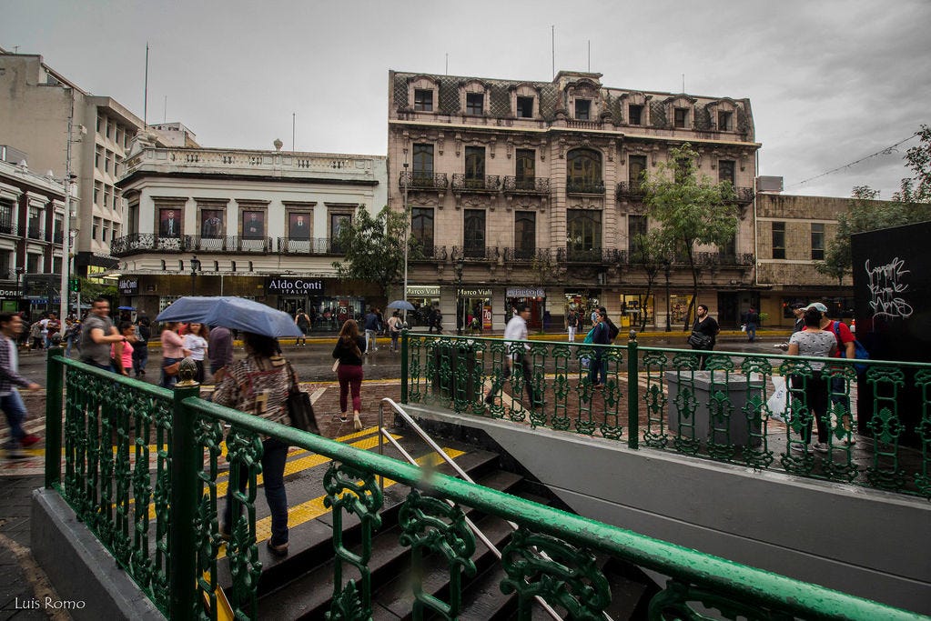 En esta foto la ciudad tiene un toque más europeizado, en especial por el edificio de 4 plantas, parece un exotiquismo de una fachada parisina. La herrería de la salida de la estación de universidad del tren ligero es bastante elaborada y me parece de acuerdo a la zona.