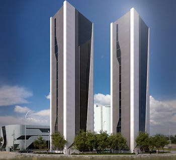 Dos torres de aproximadamente 15 pisos cada una. Ubicadas en Capital City, de planta reducida y con proyección vertical.