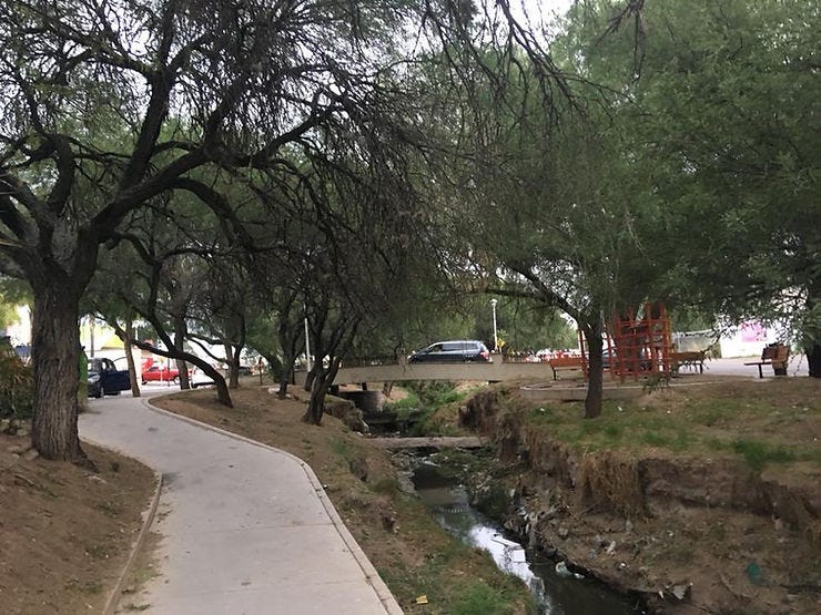 La desviación de segundo anillo y Guadalupe González por la construcción del túnel vehicular ha dejado a la vista parte del paisaje que acompañe al río San Pedro a lo largo de su cauce, que podría ser perfecta para un largo parque. Creo que de esta manera todos los arroyos de la ciudad deberían de ser aprovechados para este fin, además de conectarse formando una gran red. Esto haciendo accesibles los parques a una mayor parte de la población, además funcionando de maneras que no nos habíamos planteado antes. ¿Quién creen que tendrá mejor calidad de vida? ¿El conductor estresado o el ciclista que se transporta mayoritariamente en parques?