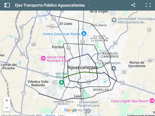 El total sumaría alrededor de 90 km, por lo que restan otros 29 km en dos ejes de los que aún no se ha hablado (supongo que uno de ellos sería Universidad y quizá otro blvd. Guadalupano). El mapa de las rutas parece que sería el siguiente.