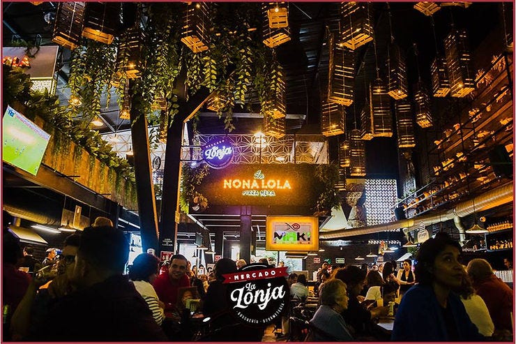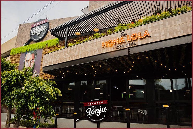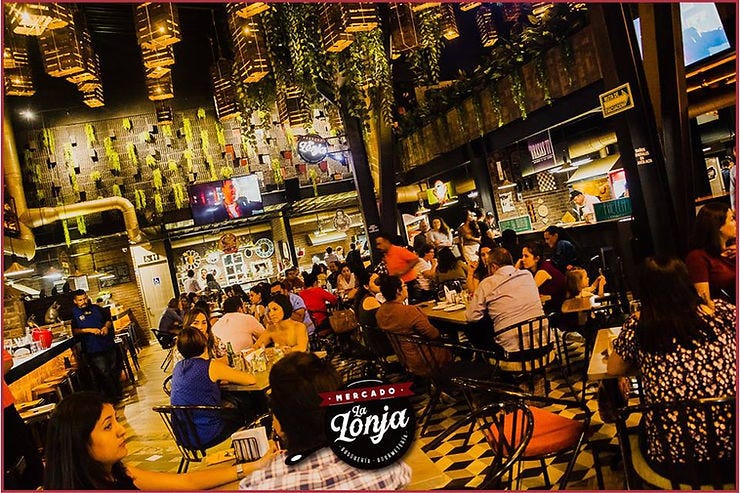 Se trata de Mercado La Lonja, un mercado gastronómico que se encuentra sobre las américas y Brasilia. En una zona muy céntrica, caminable y de gran vitalidad. A nivel de calle aporta una fachada muy interesante y divertida. También encontramos una gran variedad gastronómica que viene a generar aún más diversidad en la zona. Además de activar una esquina que antes estaba prácticamente muerta.