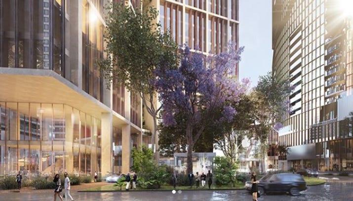 Lo interesante del parque-explanada que parece integrará pequeños locales comerciales, siendo el más destacado lo que parecería una tienda de Apple. Un gran cubo de cristal parecería ser la entrada a una tienda subterránea, similar a la Apple Store de la quinta Avenida en Nueva York.