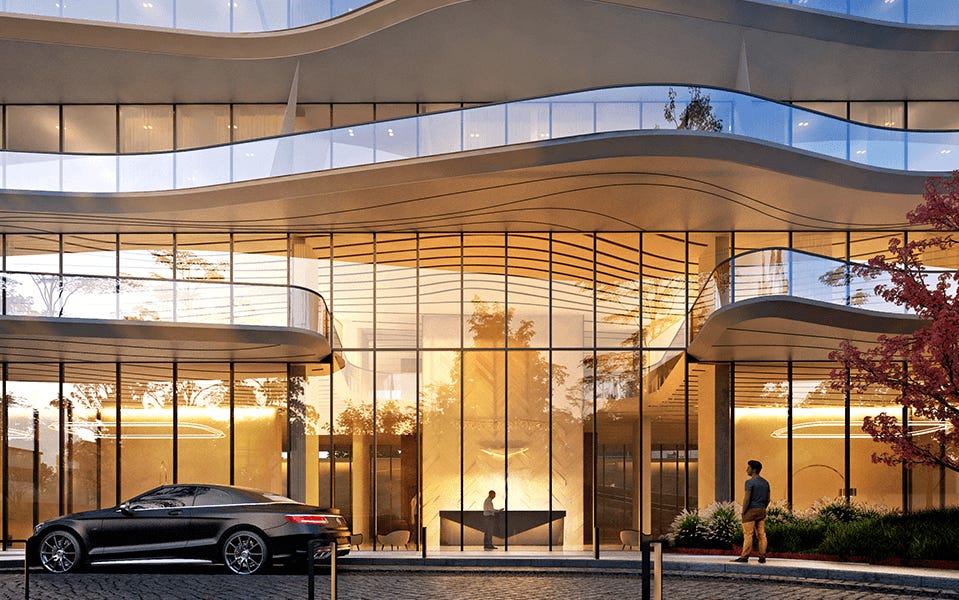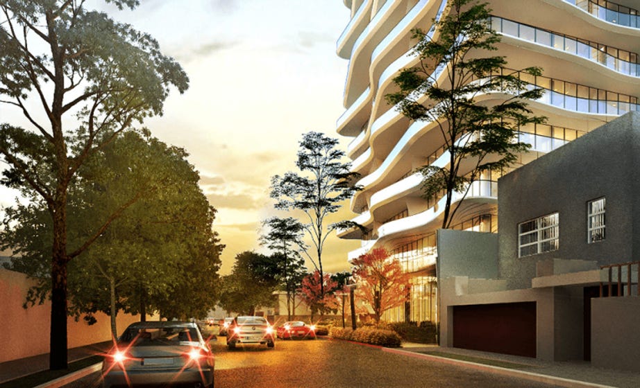 La tipología del edificio parece adecuada para ser residencial de lujo, su fachada no es cerrada ni se esconde detrás de ningún muro. Se apuesta por un trabajo de jardinería que interactúa con los peatones. Según los renders se contemplan algunos árboles en la banqueta, ojalá los veamos en el proyecto final, la ciudad lo agradecería mucho.