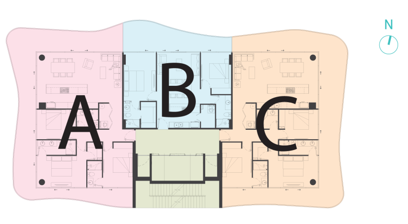 La característica más notable del edificio son sus dinámicas curvas que sobresalen de la estructura y que generan las terrazas de los departamentos por medio de volados. Más allá del resultado estético que podrían provocar las curvas en el espectador veo mucho valor en apostarle a exteriorizar los espacios, en especial con el grato clima de nuestra urbe. Otra utilidad de estas terrazas curvas voladas es proteger un poco del sol, en especial hacia el poniente del edificio.