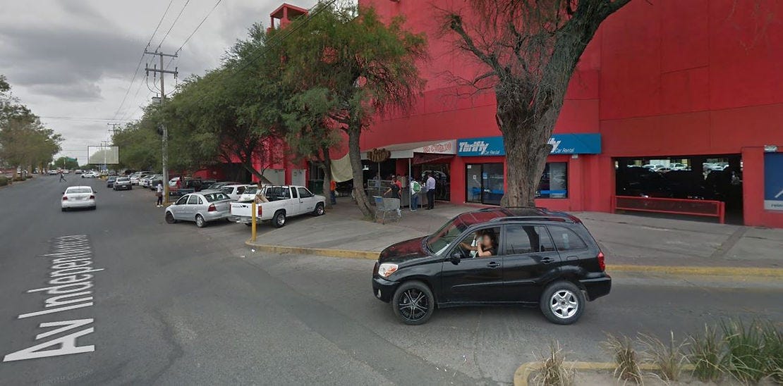 Quizá la excepción pueda ser Galerías en su fachada que da a Independencia. Aquí tenemos banquetas arboladas, algunos aparadores (como en la Gandhi) y otros pequeños comercios. Todo esto mejora al espacio público y fomenta el caminar como un medio de transporte. Imaginemos que las las fachadas de Galerías y Altaria que dan a Salida a Zacatecas fueran similares. Sin duda más personas cruzaría y se reduciría un poco el uso del auto.