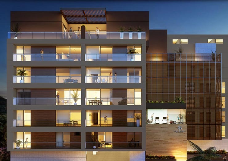 El complejo contará con alrededor de 30 departamentos, que prometen tener las mayores comodidades y acabados de primer clase. El valor agregado reside en los servicios cercanos como las torres corporativas, el centro comercial, la pista de hielo en construcción y el parque lineal de la calle Montecristo.