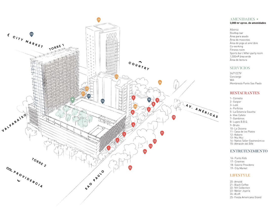 La torre también se añadirá al creciente skyline de la zona. Su altura aproximada es de 90 metros. Parece ser que se contempla una segunda torre de departamentos, aunque esta dependerá mucho del éxito comercial de la primera.