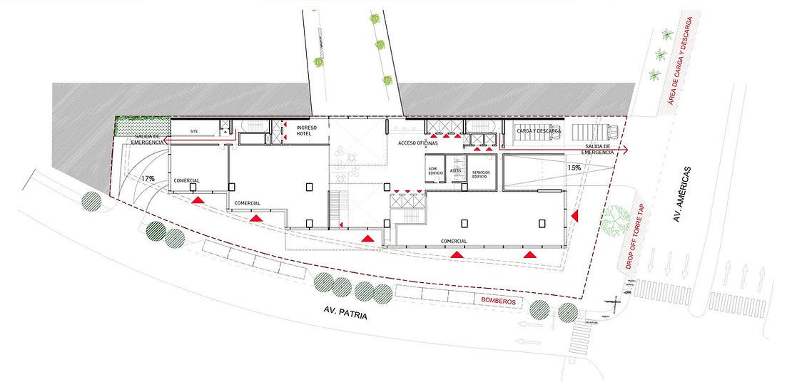 Al tener comercio a nivel de calle aportará mucho a la vida urbana que se da en la banqueta y quizá logré integrarse y expander la dinámica comercial que tiene Plaza Patria. Si bien se contemplan accesos para autos, se mantiene un respeto a la banqueta y al peatón.