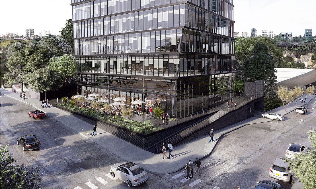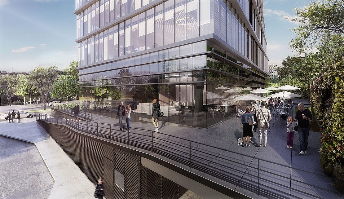 El remetimiento desde la acera al muro de cristal del edificio permitirá generar una pequeña plazoleta pública. Esta parece que será aprovechada por los comercios para tener el espacio de mesas. Me parece que podrá generar mucha vitalidad a su contexto, aprovechando el polo de atracción peatonal que es punto Sao Paulo en el distrito. También dando continuidad a locales comerciales accesibles desde la banqueta que se empieza a generar desde Guayaquil.