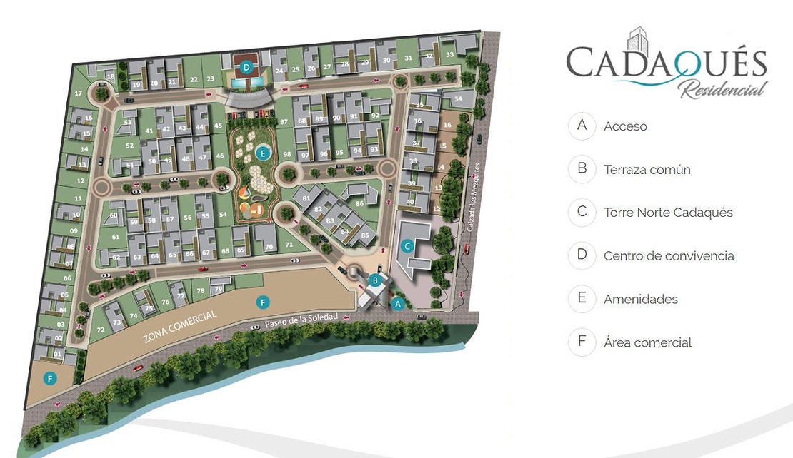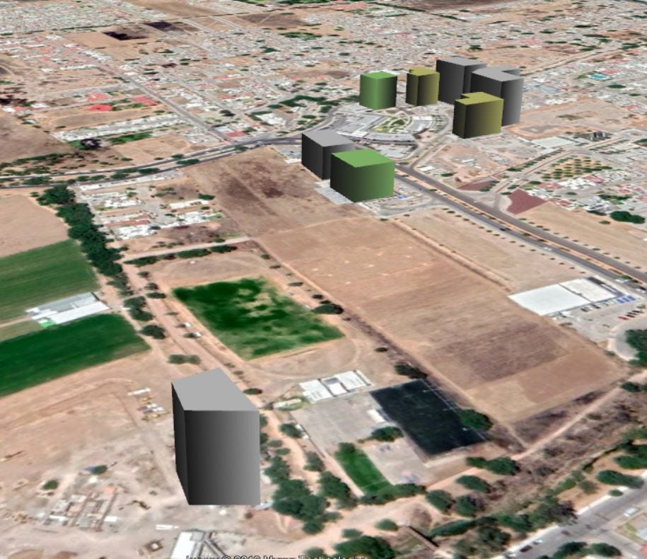 El complejo se ubicará en la esquina de Paseo de la Soledad y Calzada de los Mezquites, a menos de 300 metros de zona San Telmo. Parece que todo el perímetro del desarrollo será comercial (a excepción del ingreso y la torre). Es importante esto, pues posibilita generar bordes activos, sin embargo espero que no tenga estacionamiento frente a los locales, sino poco podrá aportar a la caminabilidad de la zona.