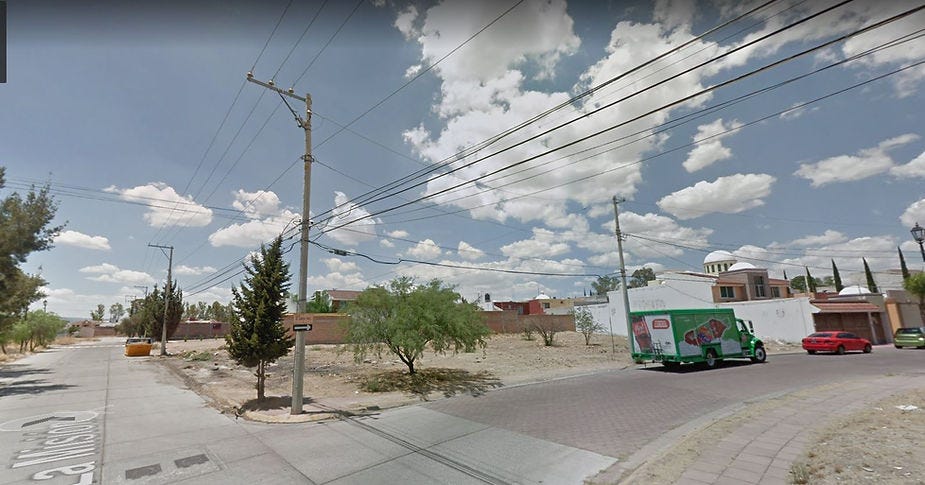 Sobre Tramonto, este se encuentra en una esquina. A pocos pasos encontramos el parque y el acceso al drive thru de Little Caesars. Y esto es bastante interesante, a pesar de que es Misión del Campanario tiene un uso de suelo residencial, el Drive Thru se integra a la traza urbana y nos acerca a los servicios que tiene el Strip Mall, destacando las Farmacias Guadalajara.