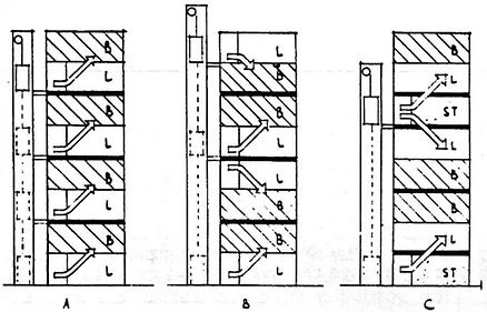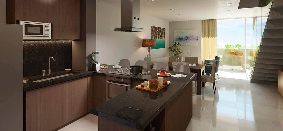 Es como si tuviéramos casas de dos niveles dentro de un edificio. De hecho para la carrera de arquitectura acabo de terminar un proyecto similar, solo con una diferencia. Usualmente, en una casa tenemos área de noche (cuartos) sobre el área de día (cocina-comedor-sala). Pero si lo aplicamos así en un edificio, tendremos el área de día de otras personas sobre el área de noche de nosotros.