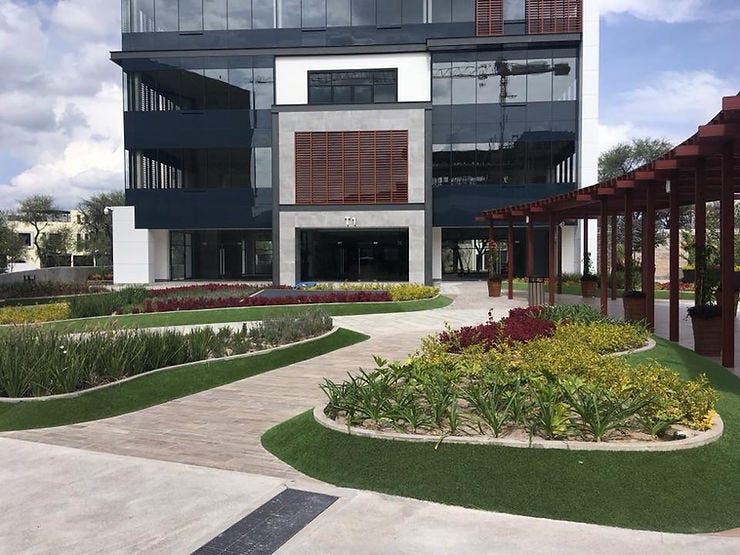 La primera torre corporativa de Zona San Telmo fue inaugurada el pasado mes de octubre. Cuenta con todas las facilidades de los corporativos de alto nivel como estacionamientos subterráneos y accesos controlados a través de un vestíbulo de ingreso. Encuentro la mayor propuesta de valor de las torres corporativas en su integración con las áreas verdes de San Telmo Town Center de las que hablaré más adelante.