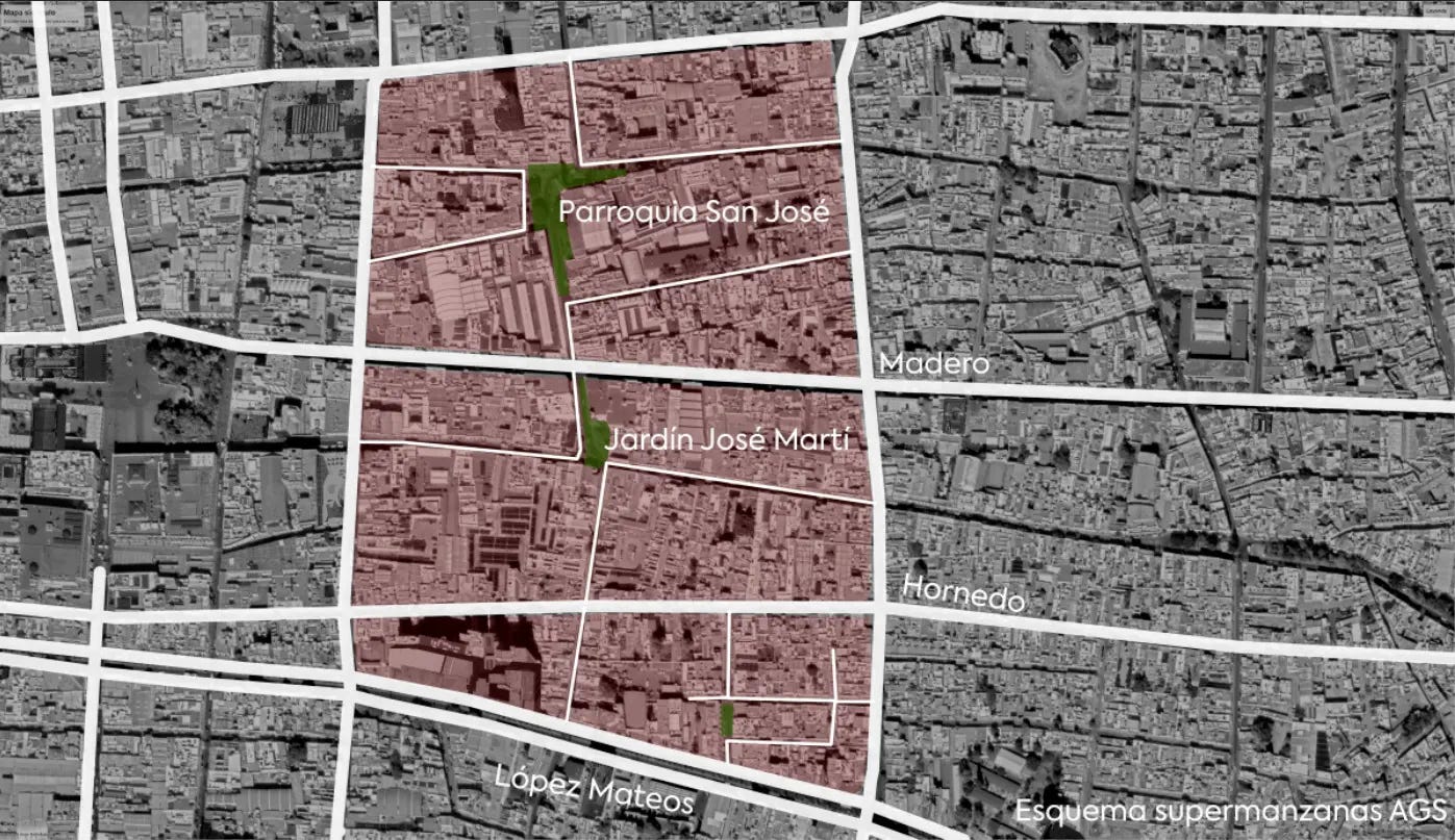 Si bien, las condiciones de la ciudad de Aguascalientes son muy distintas, esto no significa que no podamos aplicar críticamente el modelo de supermanzana. Atendiendo y considerando las características y habiéndose dado un proceso adecuado de planeación y participación ciudadana, se puede dar paso a un programa piloto. Con esto se puede aprender bastante para afinar detalles en las futuras intervenciones. Si iniciamos con acciones ligeras y rápidas como poner bolardos, mobiliario, pintura, árboles y redefinir los espacios con balizamiento se puede transformar la realidad de los alrededores, mejorando la habitabilidad y con esto, la calidad de vida.
