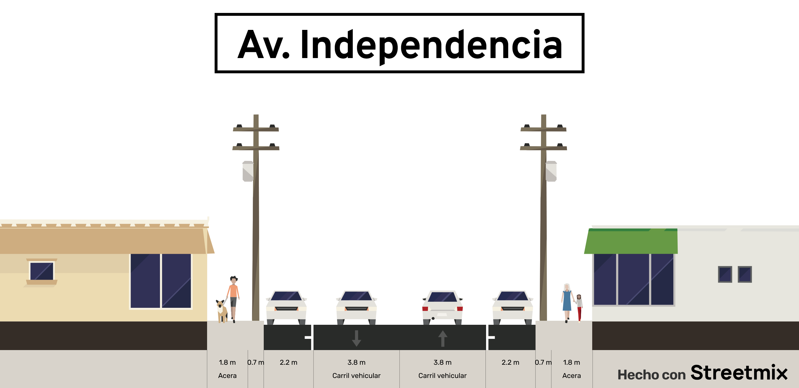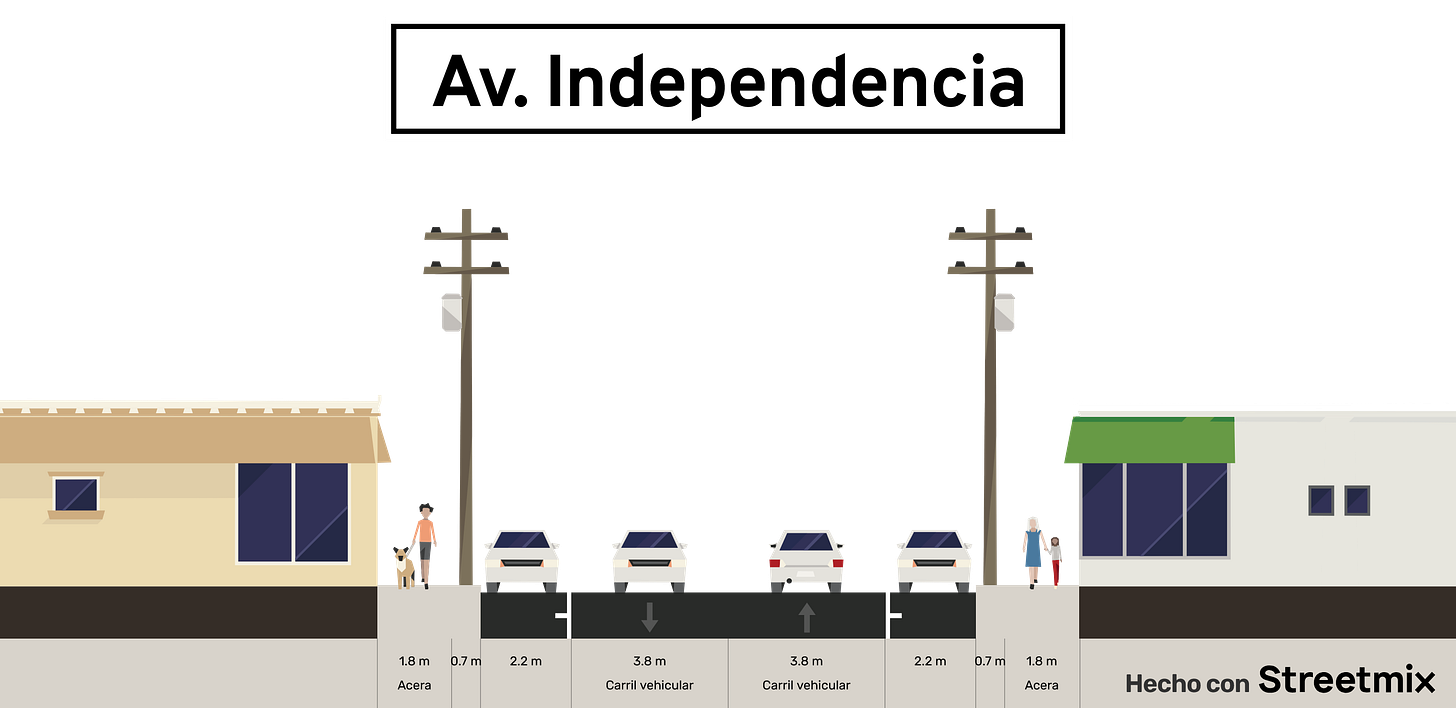 Además, queda la pregunta de que pasará en la sección más angosta sobre Av. Independencia, ya que es de solo 17 metros. La misma CMOV coordina el transporte público por lo que un proyecto de ciclovía sobre esta vía en esencia debería de ser integral y considerar el paso de autobuses urbanos, ya que este corredor es uno de los principales de la ciudad.