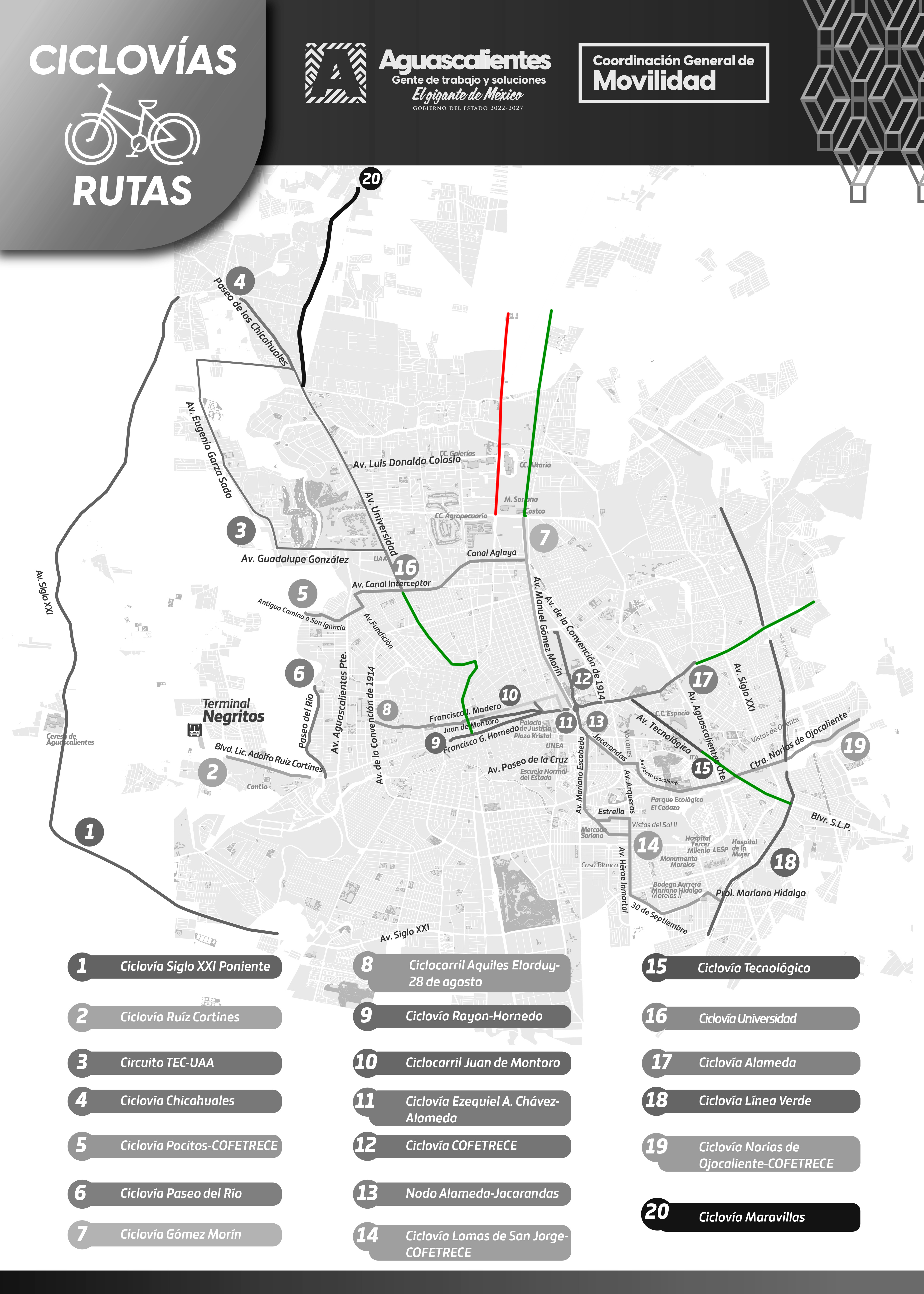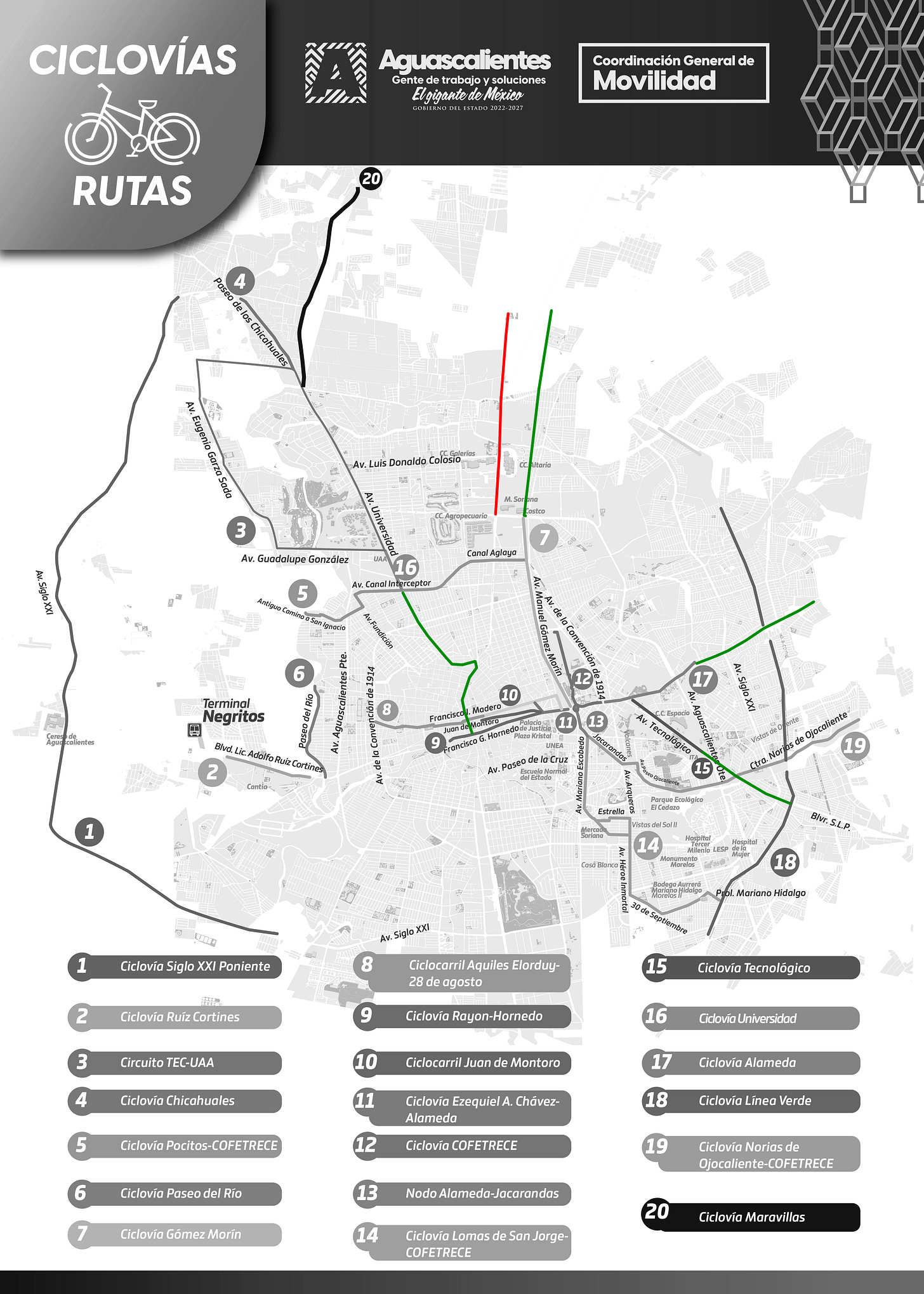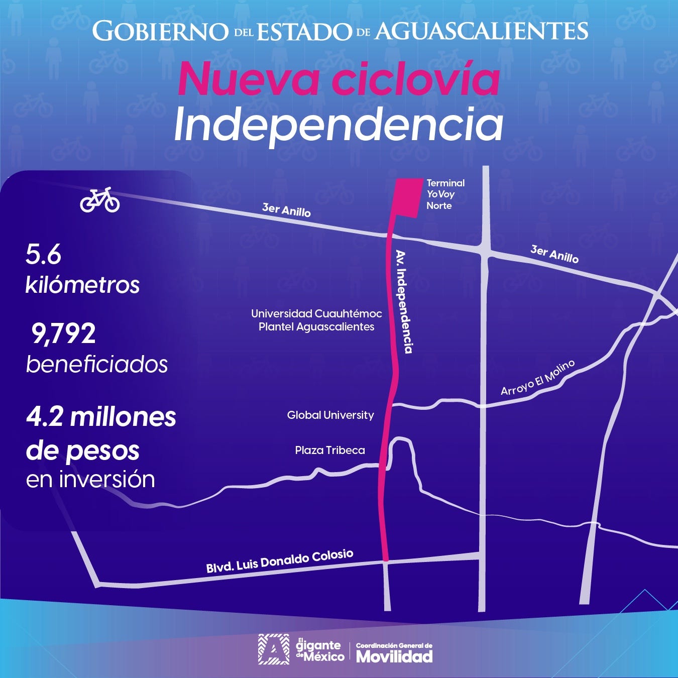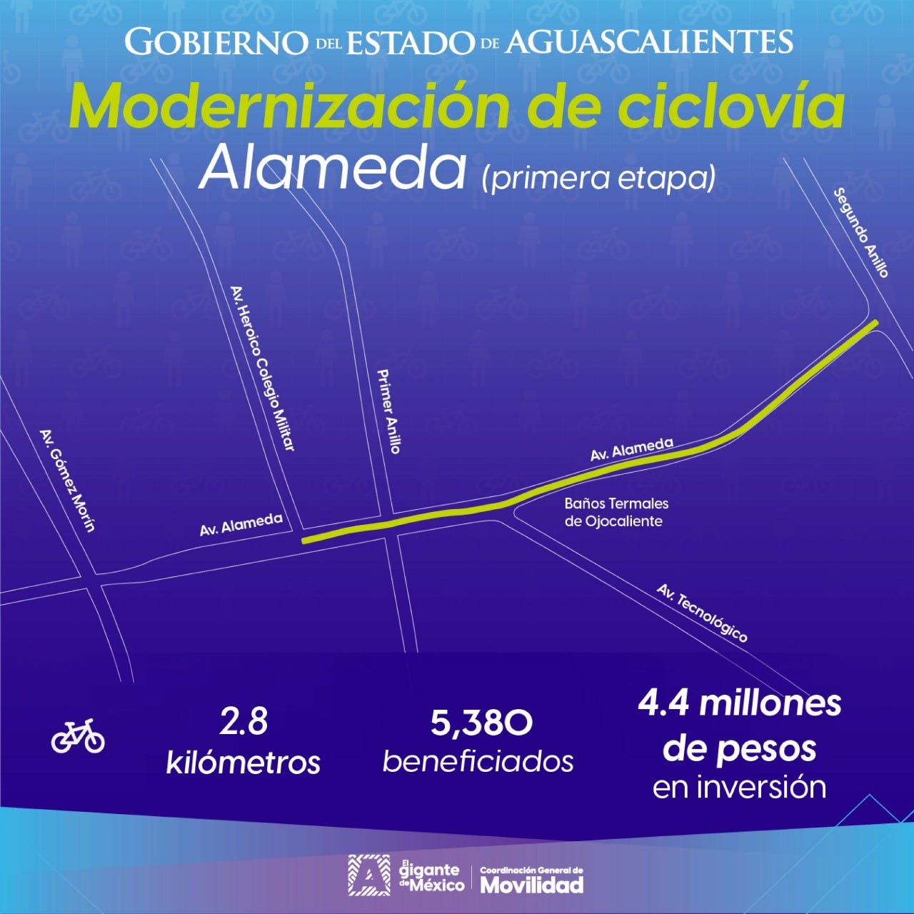 El día de ayer, la Coordinación General de Movilidad de Aguascalientes (CMOV) anunció tres proyectos de infraestructura ciclista para el estado de Aguascalientes, con una inversión total de 10.6MDP