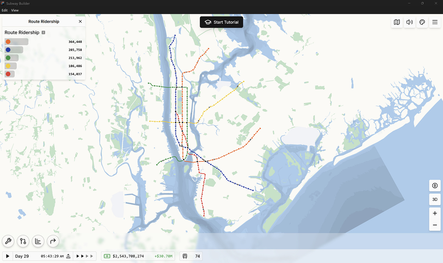 He estado jugando Subway Builder últimamente — una cantidad obscena de horas, para ser honesto.